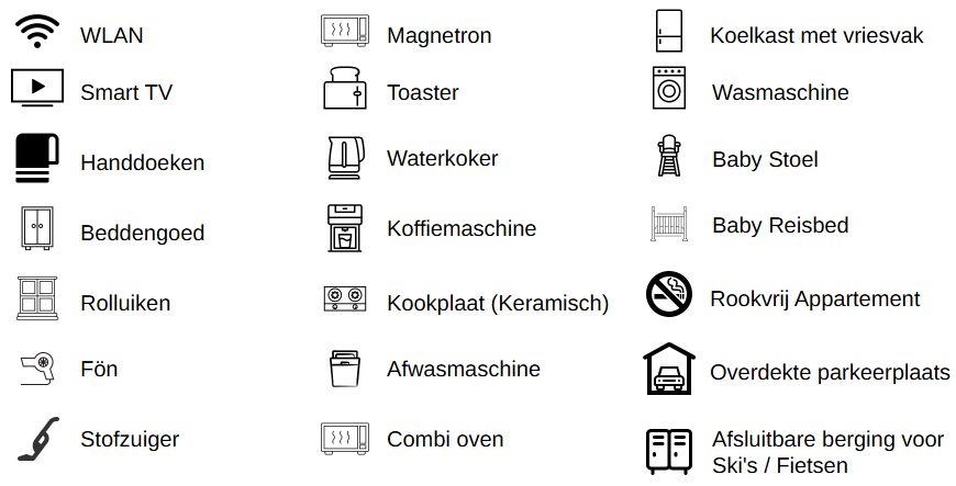 Accommodatie is volledig uitgerust met wifi, TV zowel Duits als Nederlands aanbod (Netflix, Waipu, NLZiet), Keuken met modern apparatuur (Vaatwasser, Koffievolautomaat, Combi oven). Buiten balkon en comfortabele woonruimte.